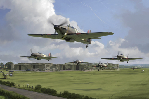 Hurricane ScrambleHurricanes of 32 Squadron,Hawkinge Airfield, July 1940 This is a limited edition of 500 prints.